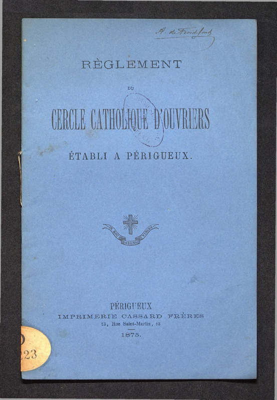 Réglement du Cercle catholique d'ouvriers établi à Périgueux