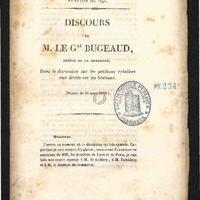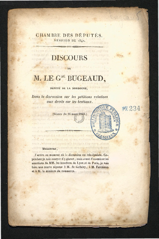 Discours de M. le général Bugeaud,... dans la discussion sur les pétitions relatives aux droits sur les bestiaux. Séance du 16 mars 1840 (Autre variante du titre)