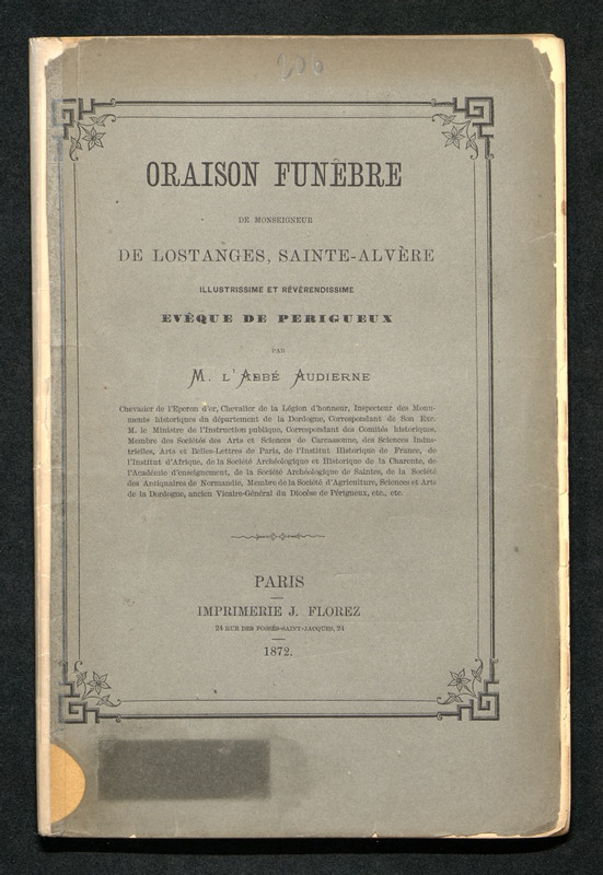 Oraison funèbre de Monseigneur de Lostanges, Saint-Alvère illustrissime et Révérendissime évêque de Périgueux