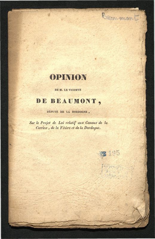Opinion de M. le vicomte de Beaumont,... sur le projet de loi relatif aux canaux de la Corrèze, de la Vézère et de la Dordogne. Séance du 9 avril 1825