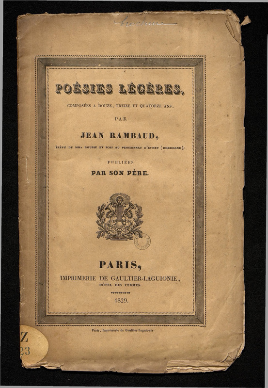 Poésies légères, composées à douze, treize et quatorze ans, par Jean Rambaud, élève de MM. Goubie et Bois au pensionnat d'Eymet (Dordogne) ; publiées par son père