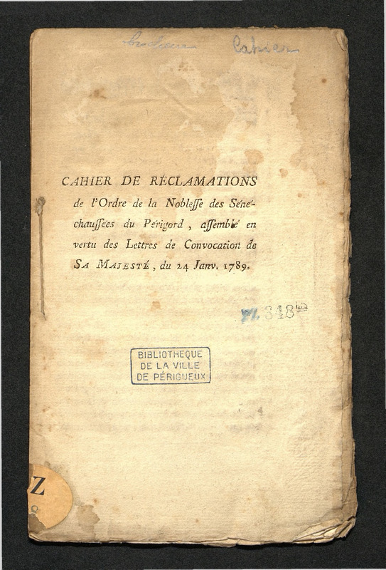 Cahier de réclamations de l'ordre de la noblesse des sénéchaussées du Périgord... Suivi du mandat spécial donné à tous les députés de l'ordre de la noblesse... (26 mars 1789.)