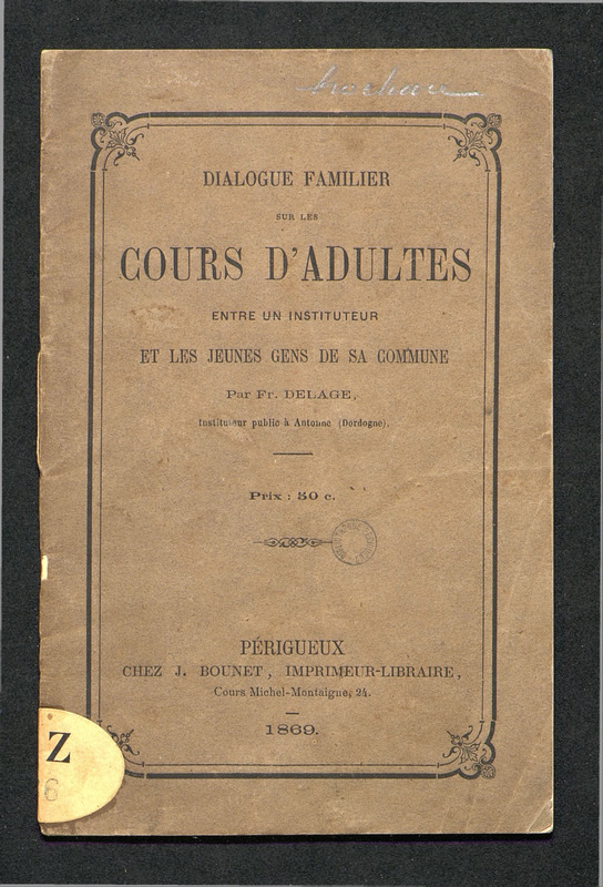 Dialogue familier sur les cours d'adultes entre un instituteur et les jeunes gens de sa commune