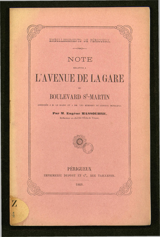 Embellissements de Périgueux : Note relative à l'avenue de la gare ou boulevard St-Martin adressée à M. le maire et à MM. les membres du conseil municipal