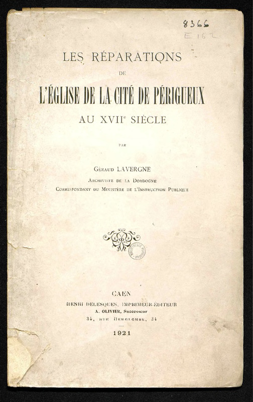 - Les réparations de l'église de la cité de Périgueux au XVIIème siècle