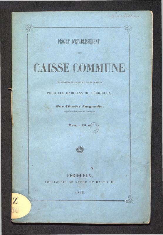 Projet d'établissement d'une caisse commune de secours mutuels et de retraite pour les habitans de Périgueux