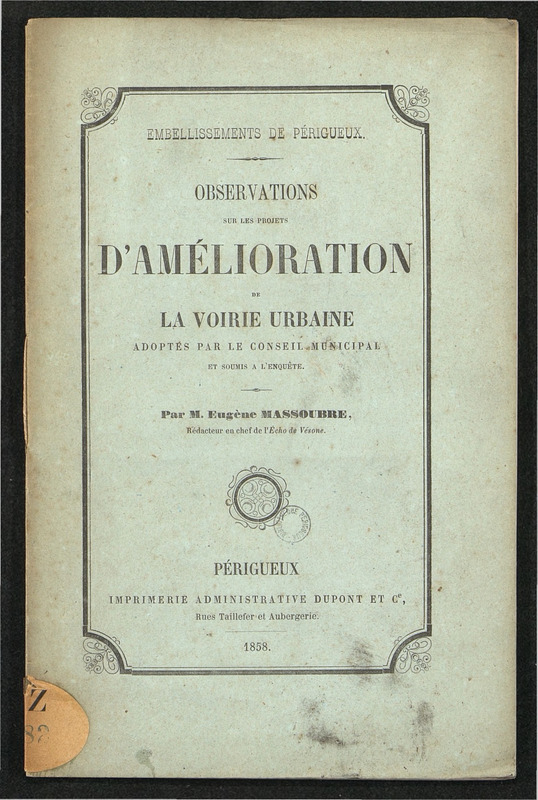 Embellissements de Périgueux : Observations sur les projets d'amélioration de la voirie urbaine adoptés par le conseil municipal et soumis à l'enquête