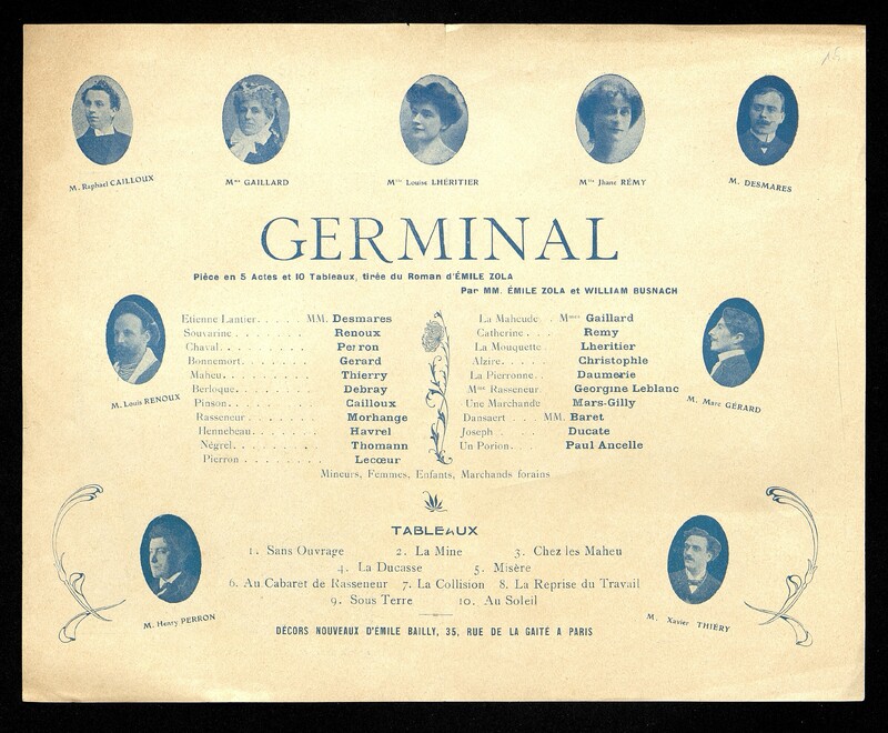 Germinal pièce en 5 actes et 10 tableaux tirée du Roman d' Emile Zola
