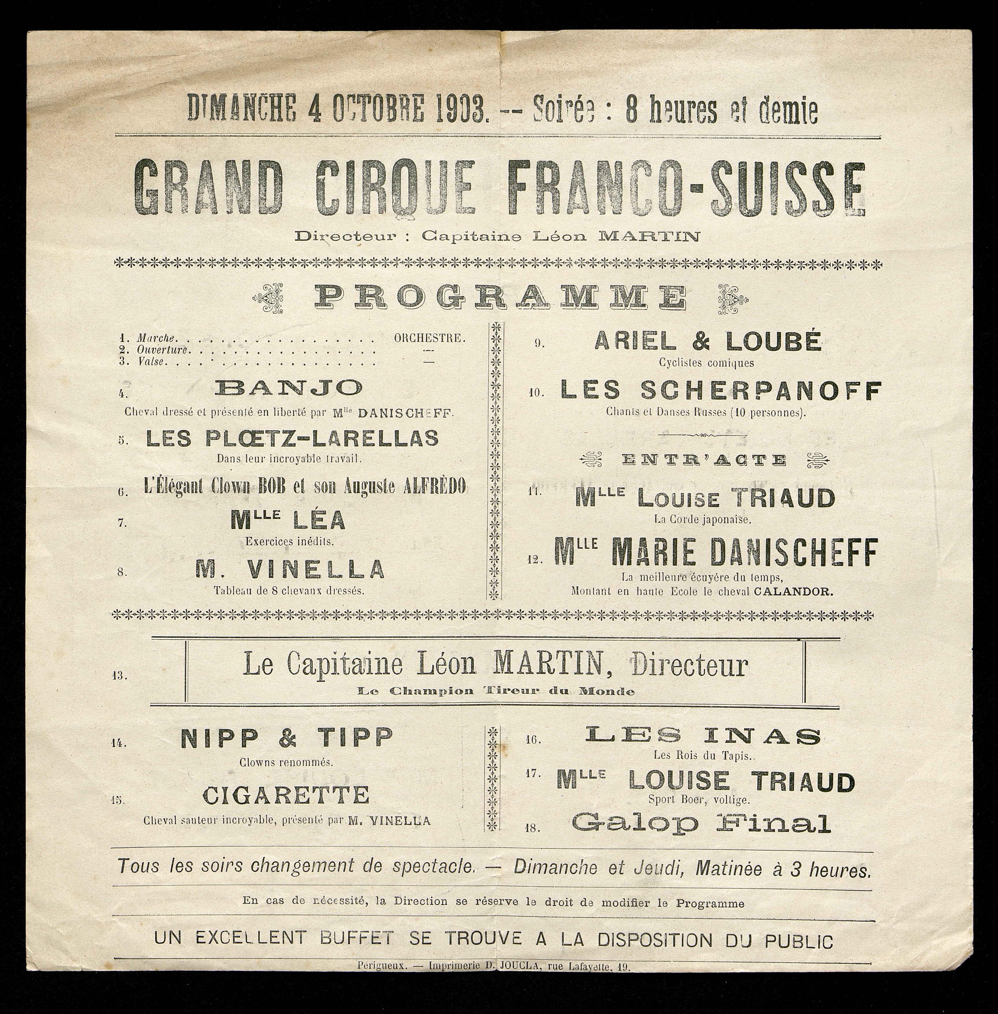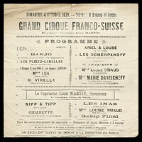 Grand Cirque franco-suisse Dimanche 4 octobre 1903