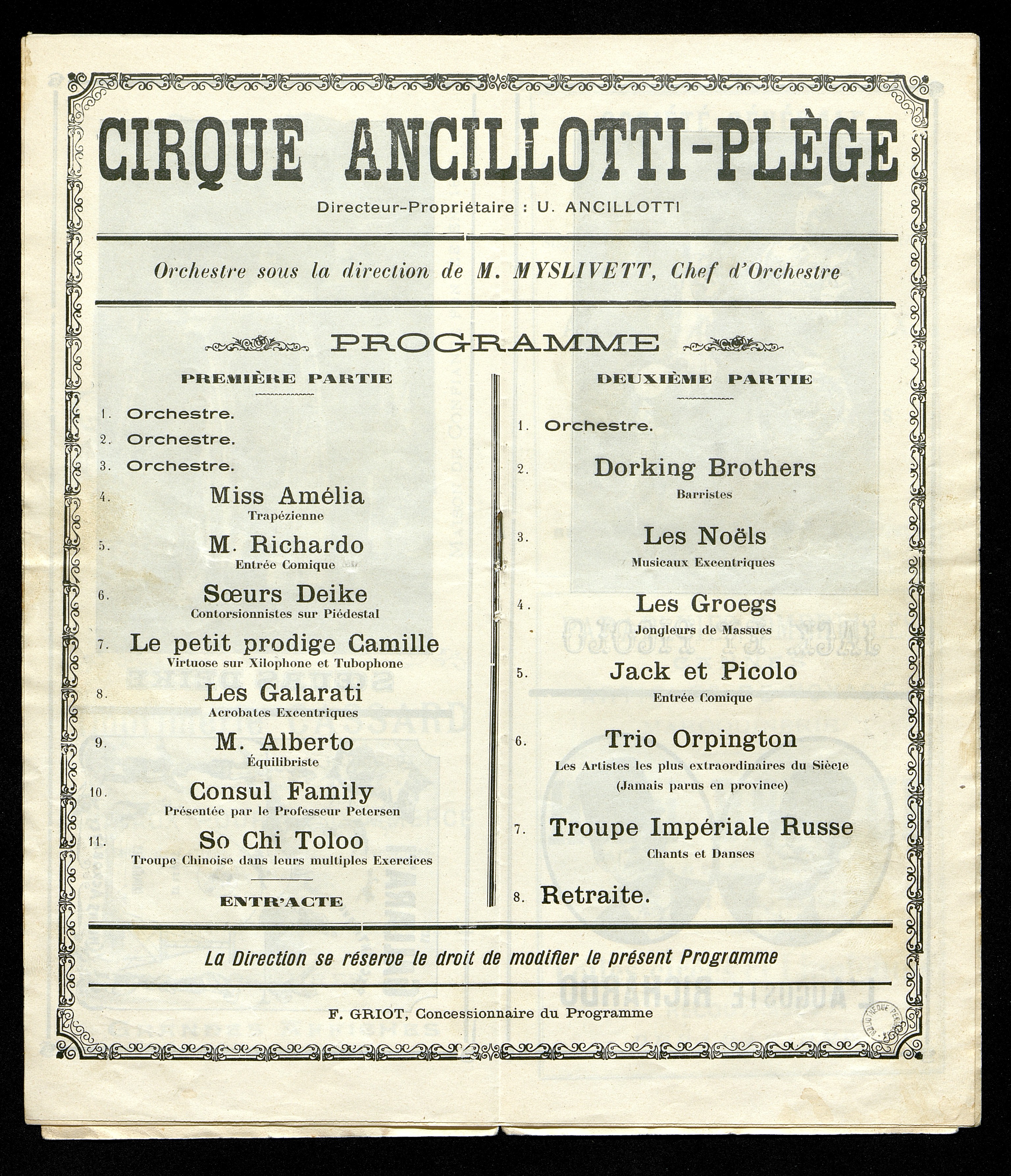 Programme du Cirque Varités Ancilotti-Plège à Périgueux