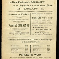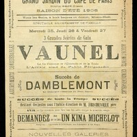 Au recto : Grand Jardin du Café de Paris Saison d'été 1906 3 grande s soirée de Gala avec Vaunel comique de L'Eldorado, Damblememont, chanteur classique; Orchestre de M Frecheville père. Au verso : publicités commerciales locales