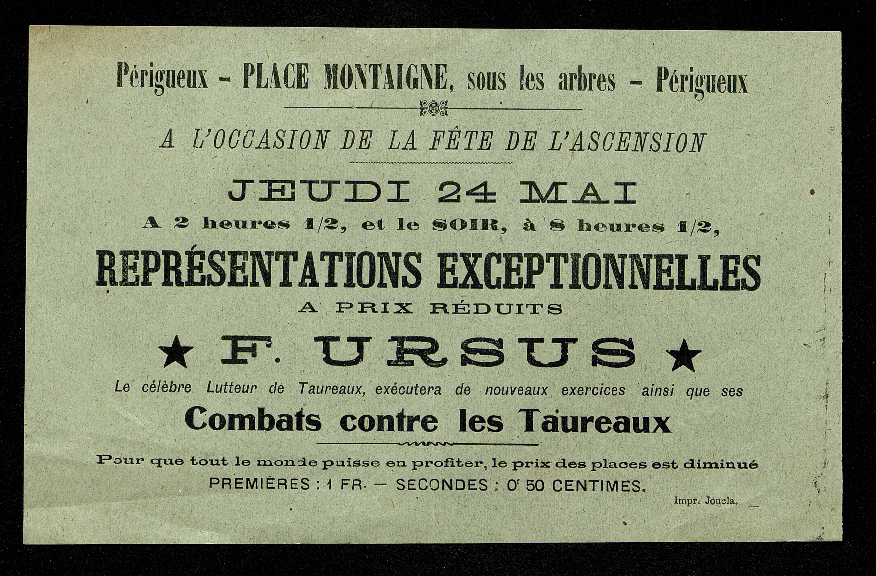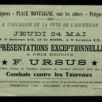 Publicité pour une représentation exceptionnelle de F. Ursus à l'occasion de la fête de l'Ascension