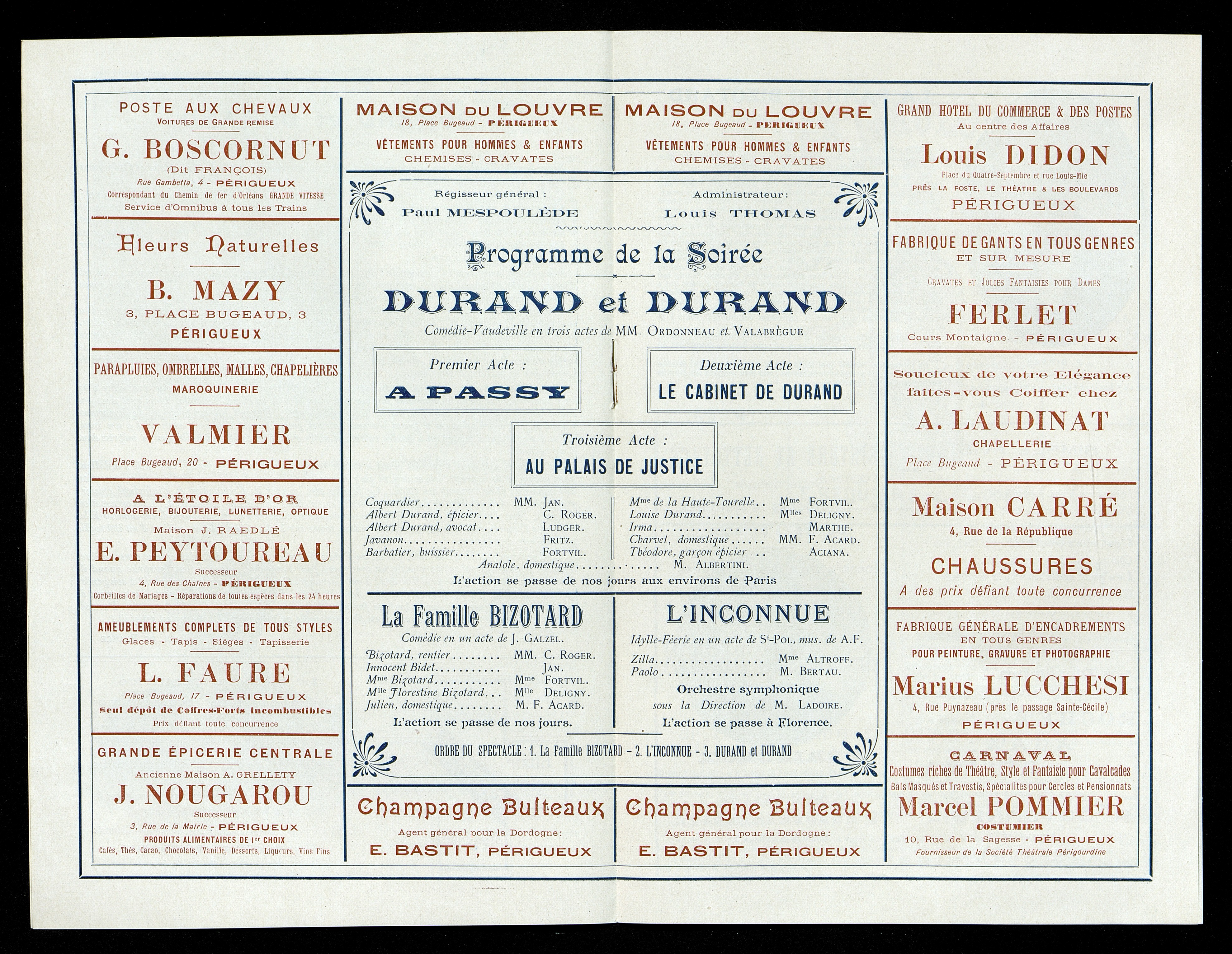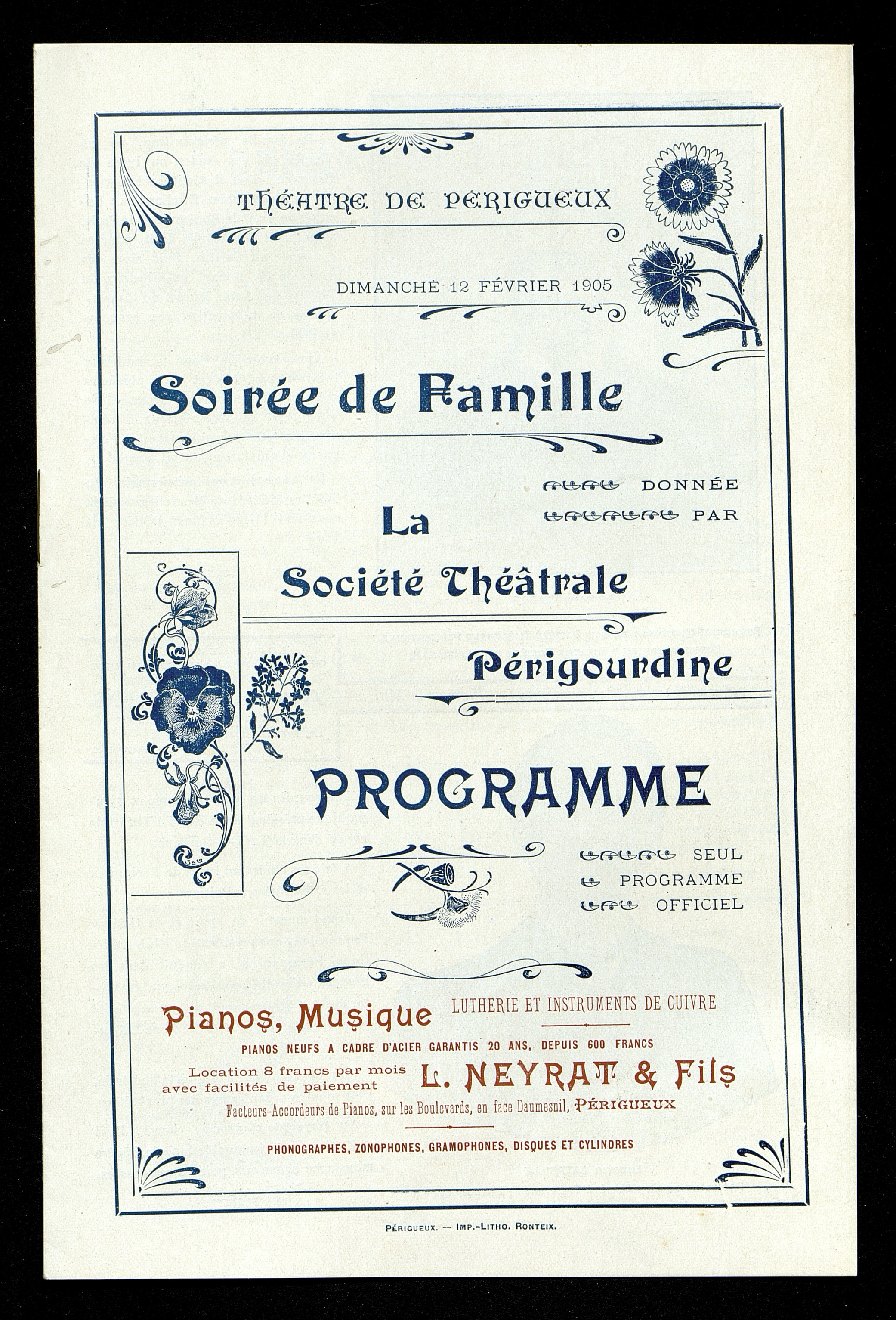 Programme de la Soirée de famille du dimanche 1er février 1905 au Théâtre de Périgueux