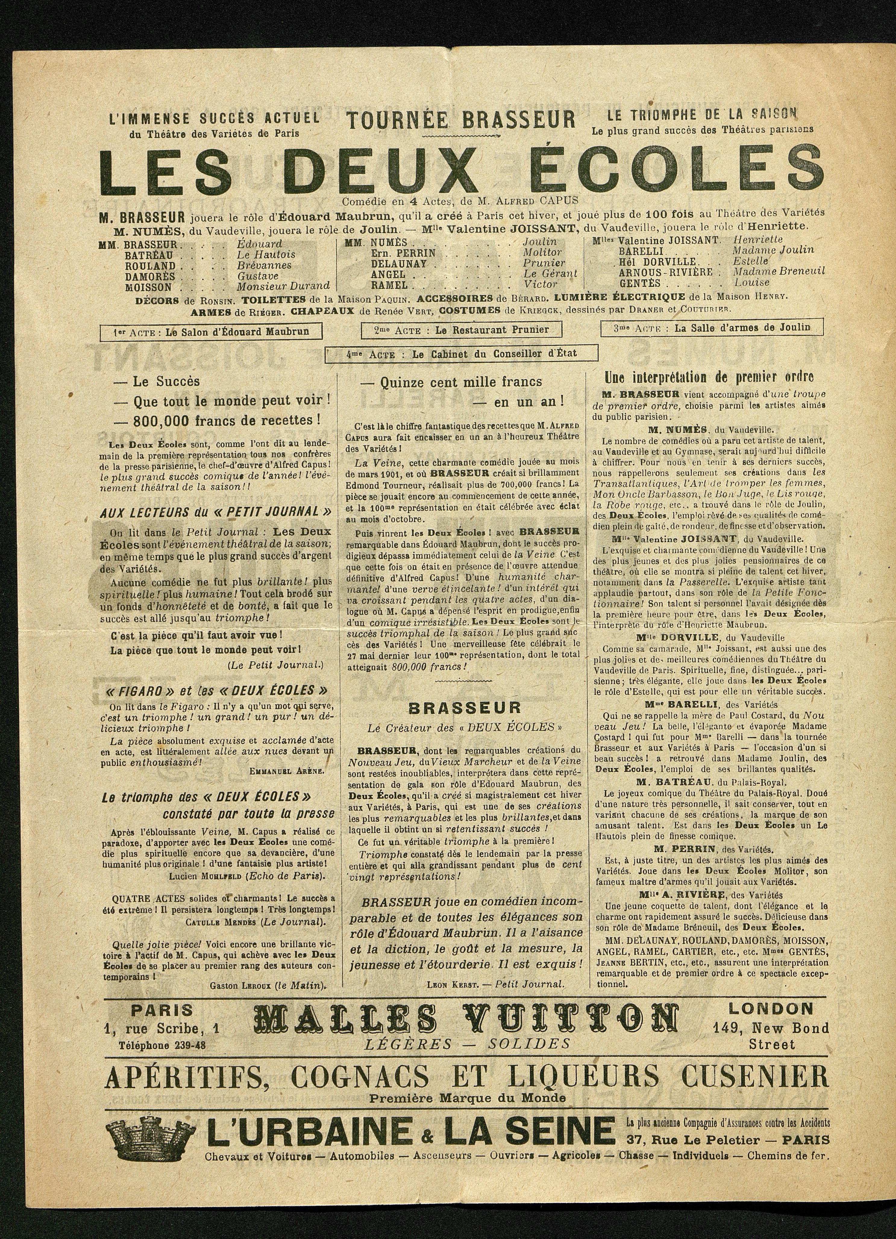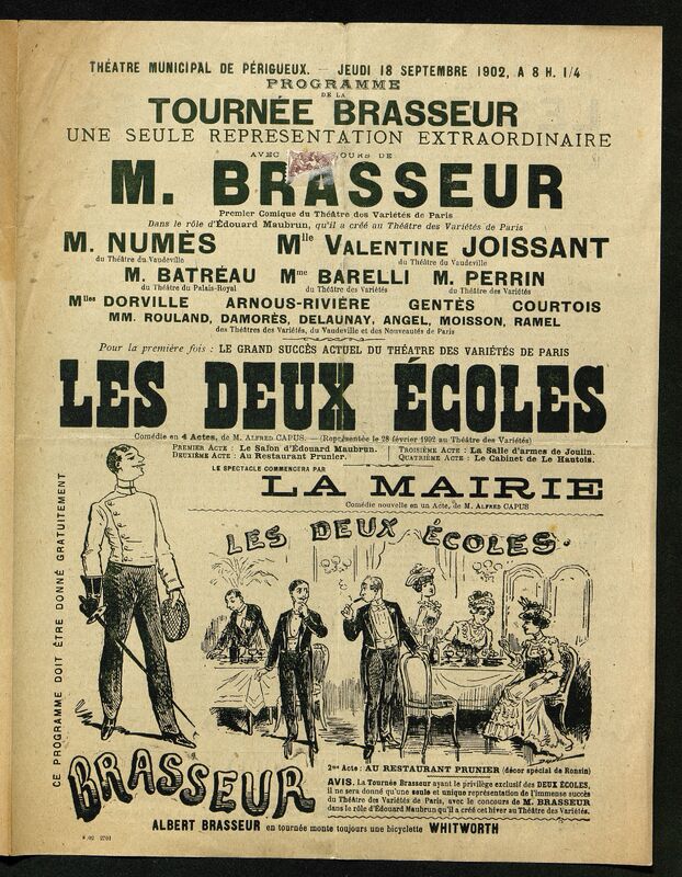 Programmation de "Les deux écoles" au Théâtre de Périgueux le jeudi 18 septembre 1902