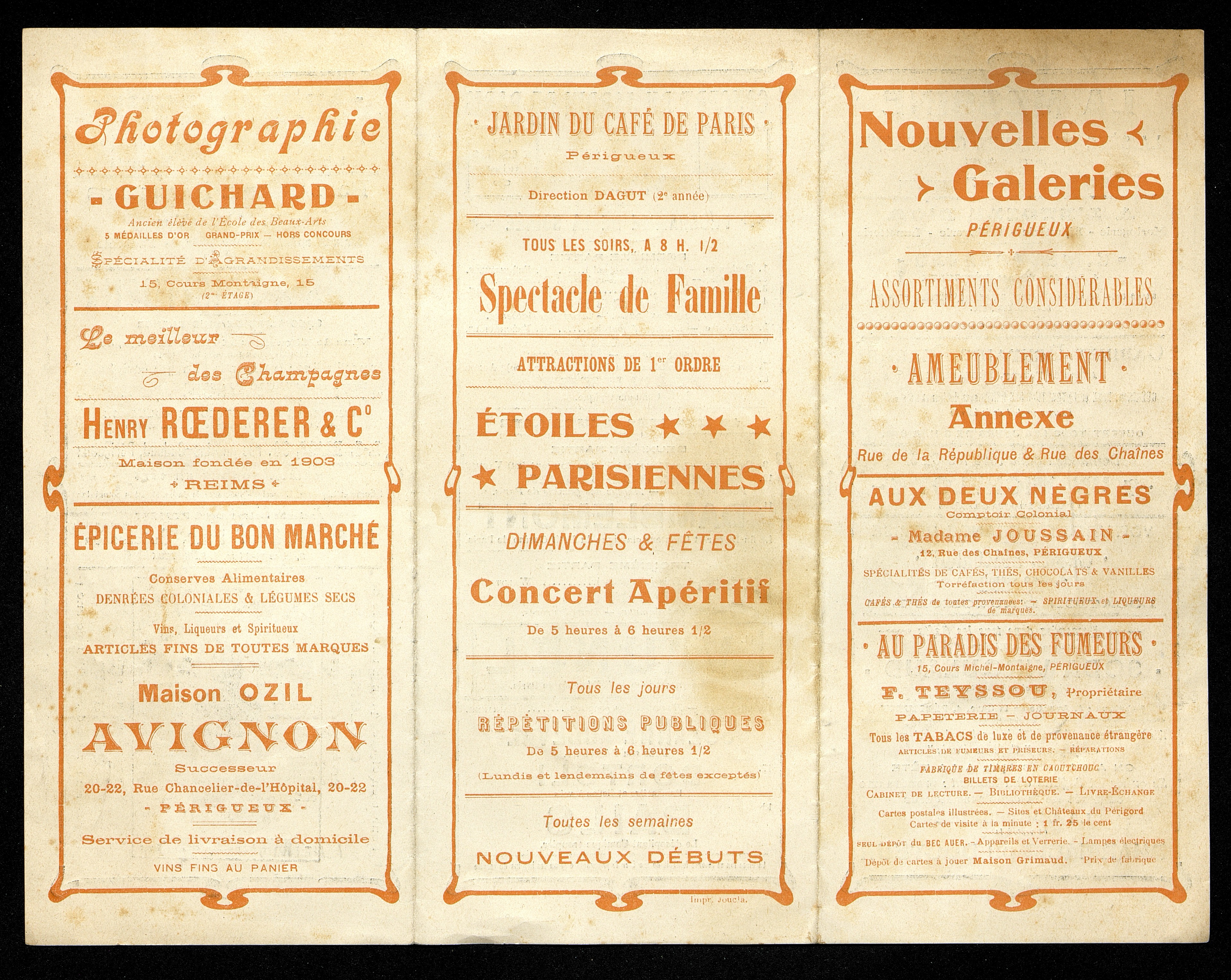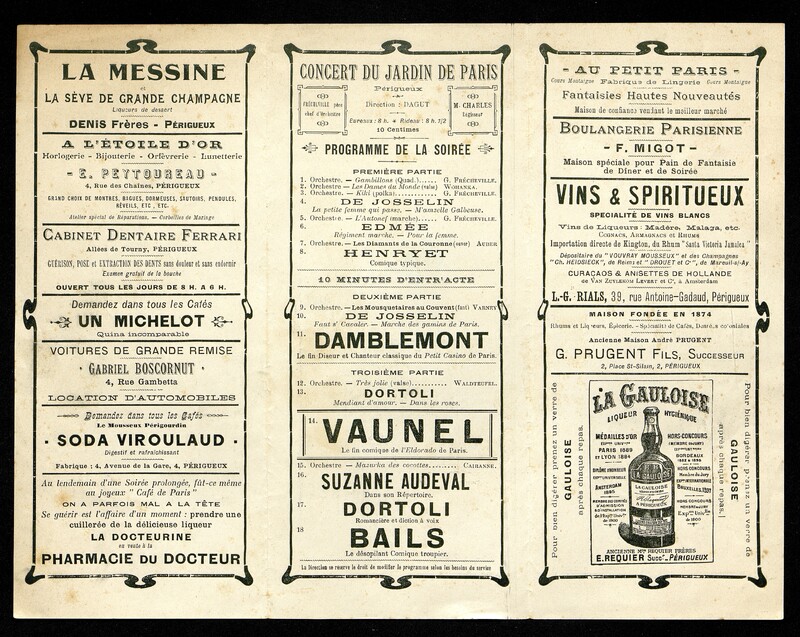 Programme de concert au Jardin de Paris à Périgueux