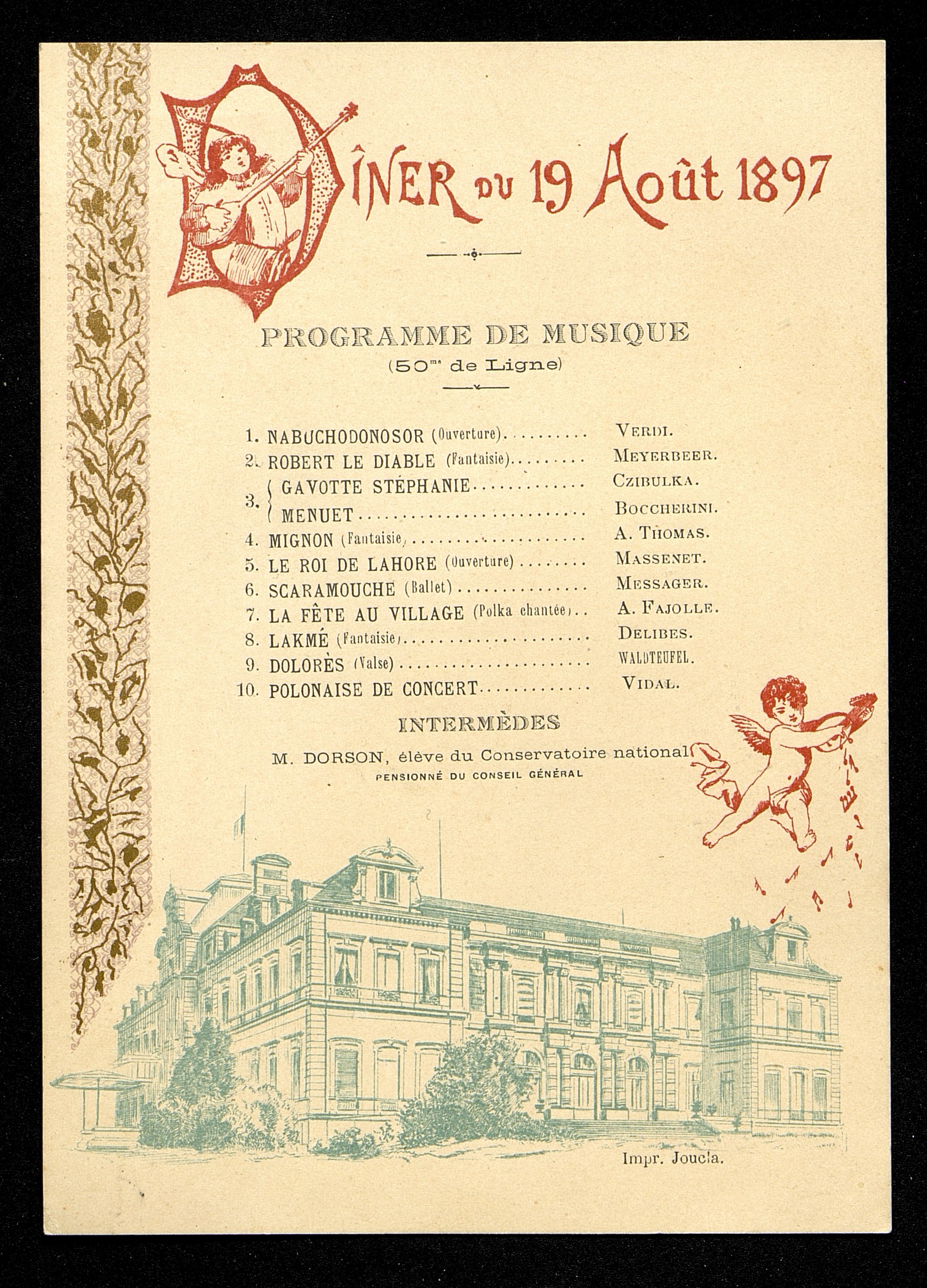 - Menu du Diner du 19 Août 1897. Programme de musique (50ième de ligne)