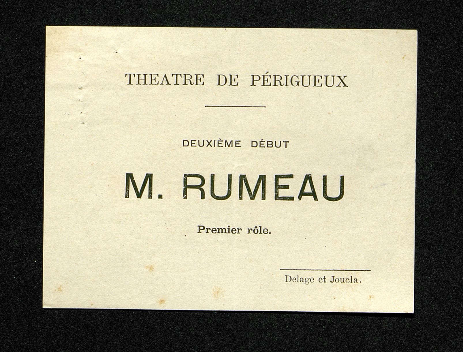 Bon du Théâtre de Périgueux M. Rumeau deuxième début