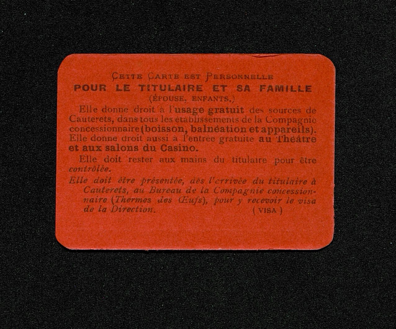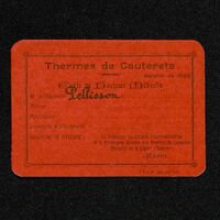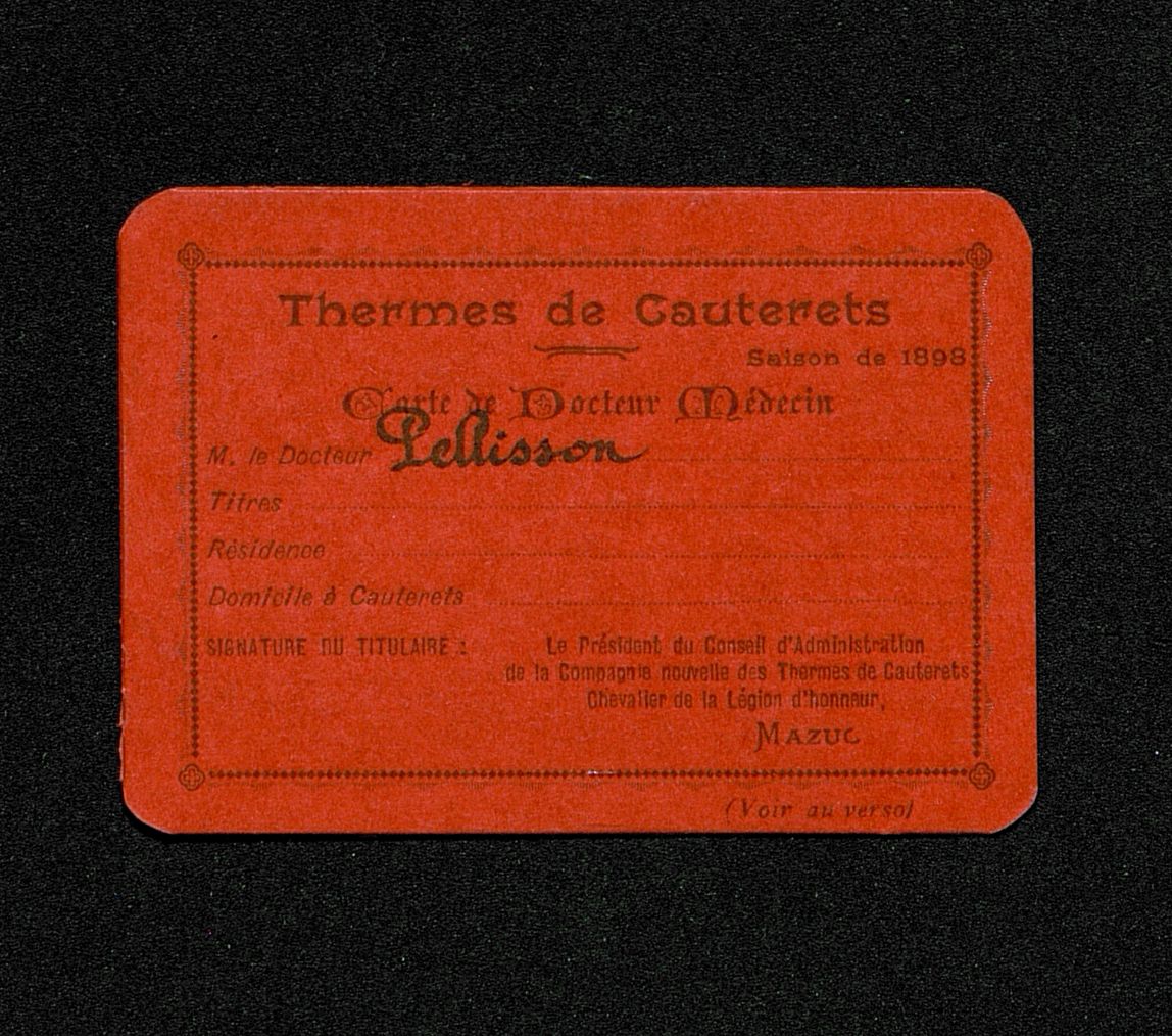 Carte d'entrée aux Thermes de Cauterets . Saison 1898 pour Pellisson