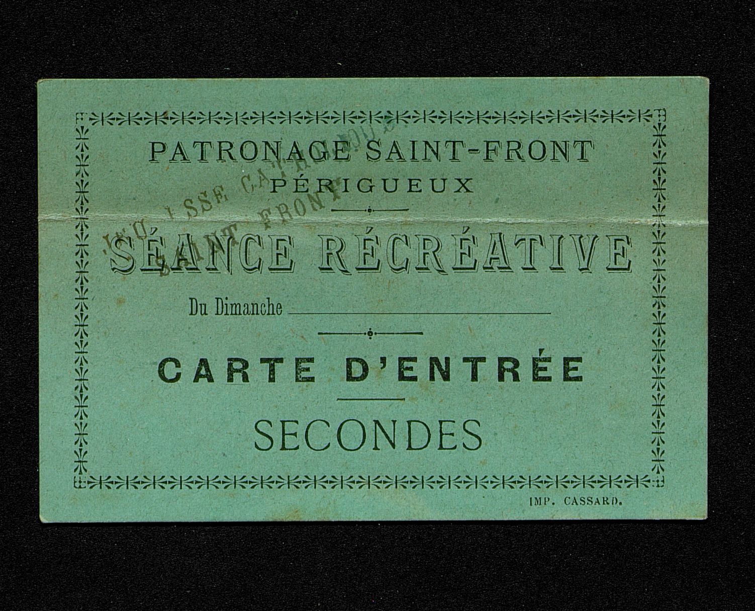 Carte d'entrée au Patronage de Saint-Front de Périgueux pour une séance récréative