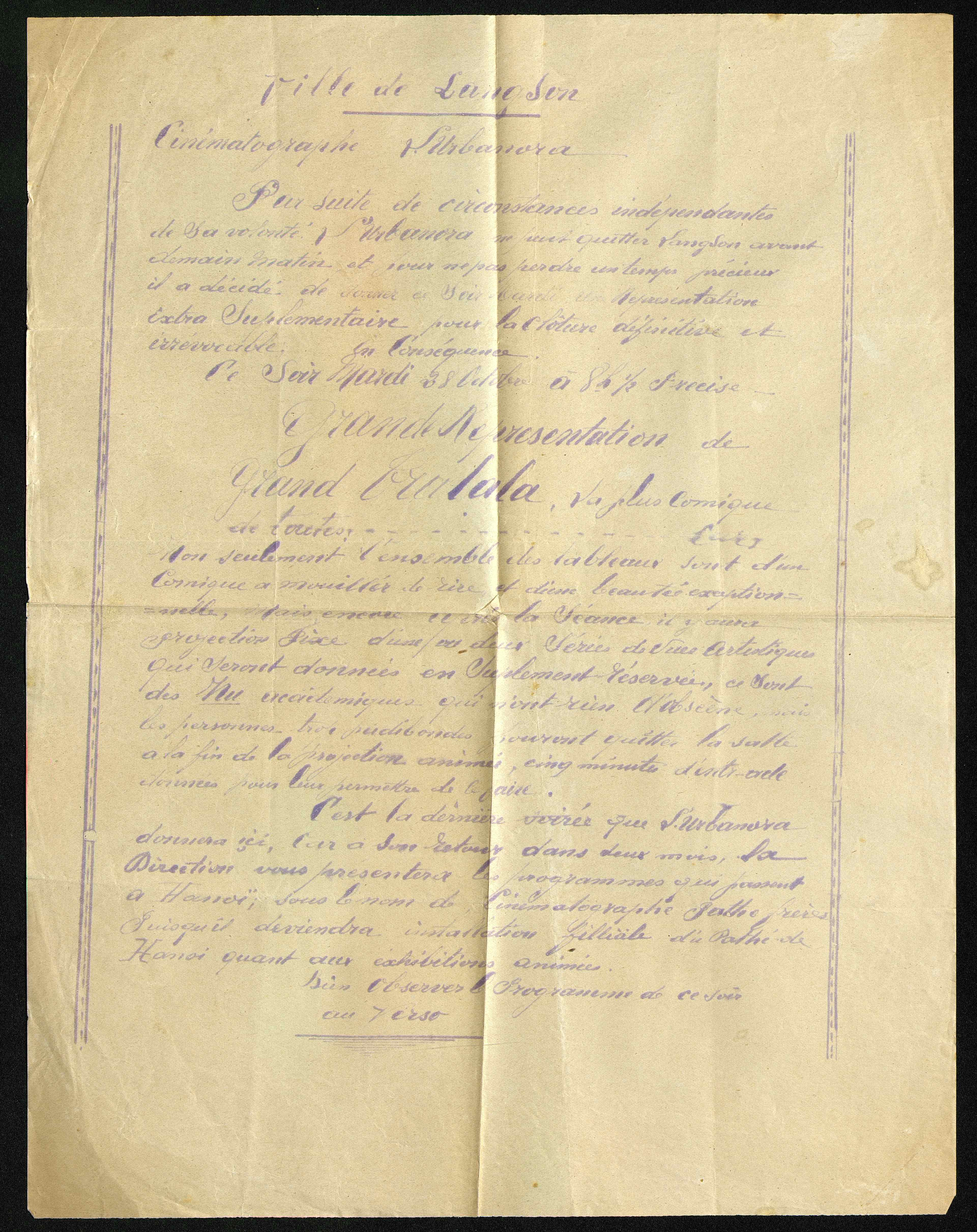 Ville de Langson. Programme du Cinématographe Lurbanora. Grand Tralala