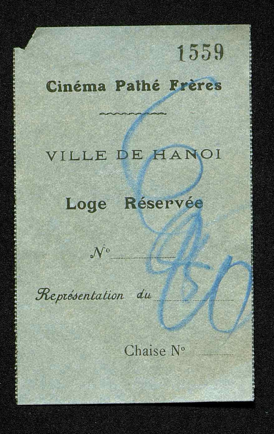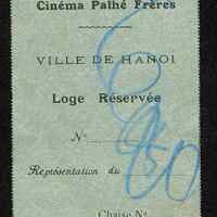 Billet Cinéma Pathé Frères N° 1559 Loge Réservée de La Ville d'Hanoï