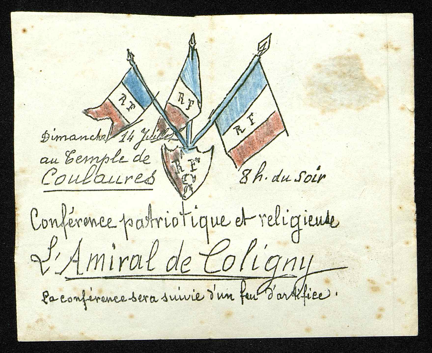 "L'Amiral de Coligny" programmé à huit heures du soir suivie d'un feu d'artifice