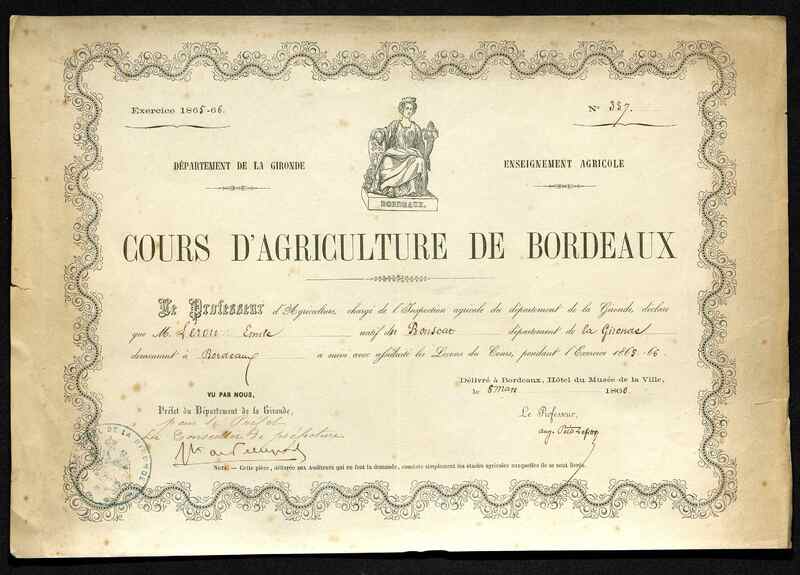 - Diplome du Cours d'Agriculture de Bordeaux