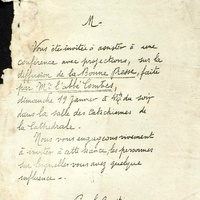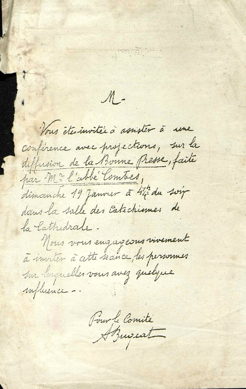 Conférence avec projections sur la diffusion de la bonne presse le dimanche 19 janvier à quatre heures et demie du soir dans la salle de catéchisme de la cathédrale