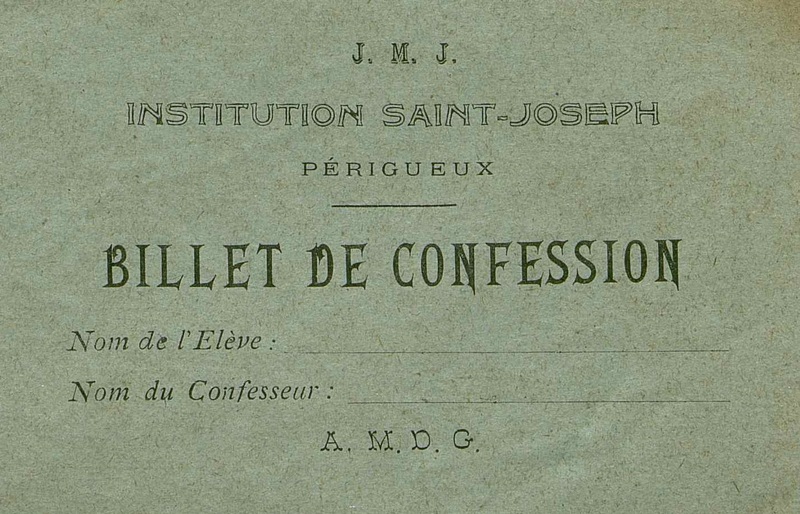 Billet de confession de l'institution Saint-Joseph de Périgueux