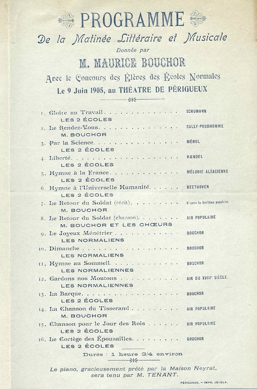 Programme de la Matinée Littéraire et Musicale au Théâtre de Périgueux