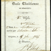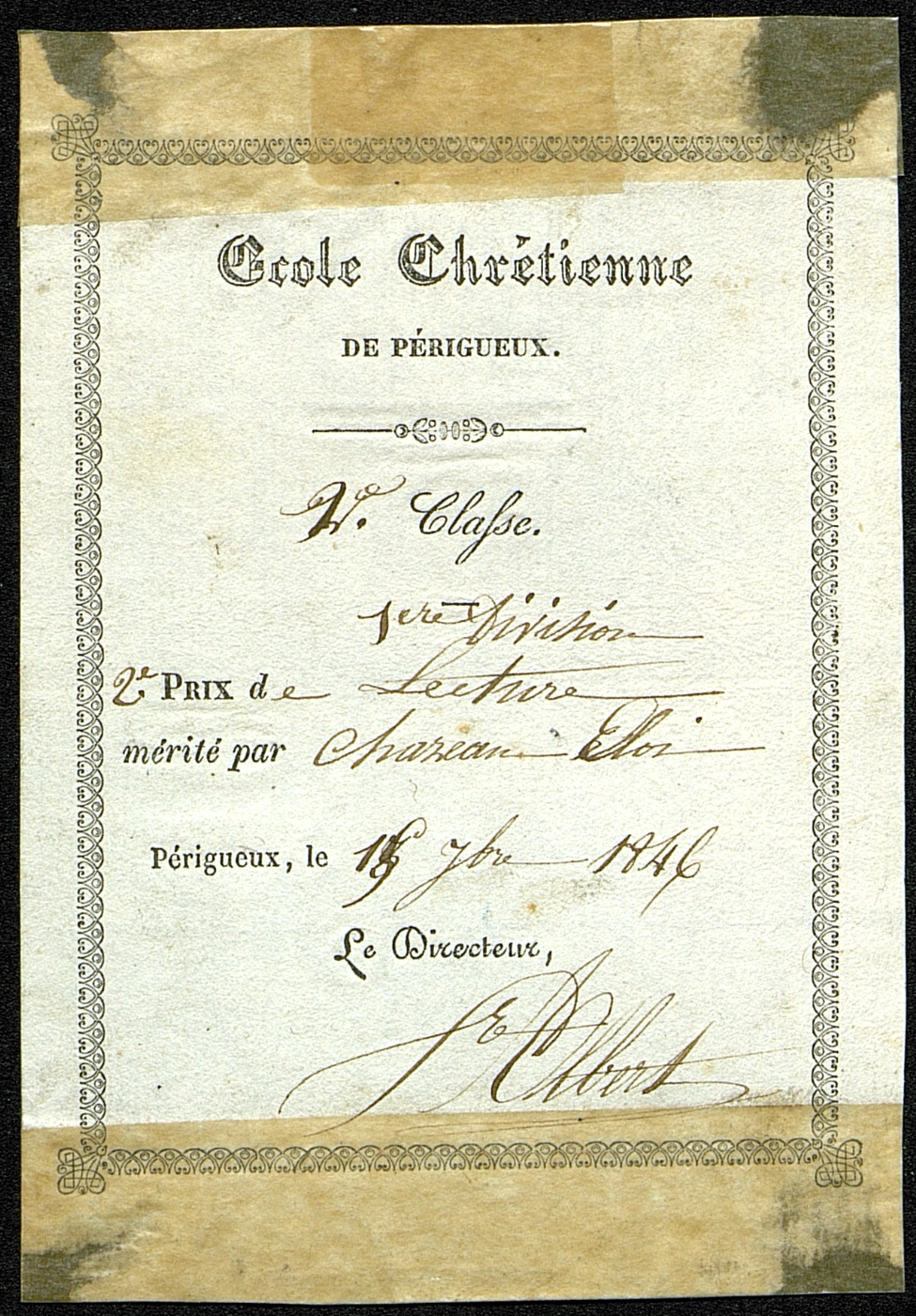 Ecole chrétienne de Périgueux . 2ème classe. 1ère division. 2ème prix de lecture