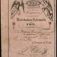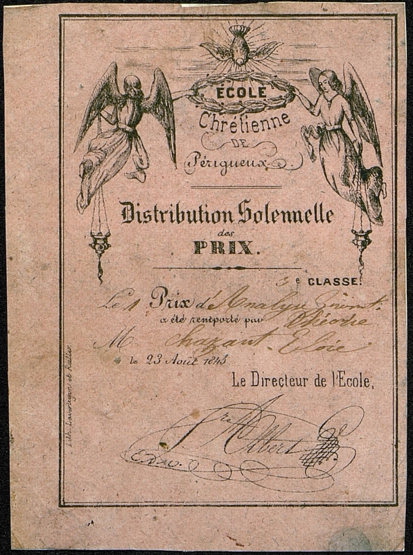 Au recto : Premier Prix d'analyse, géométrie et théorie a été remporté par M Chazaut Eloie