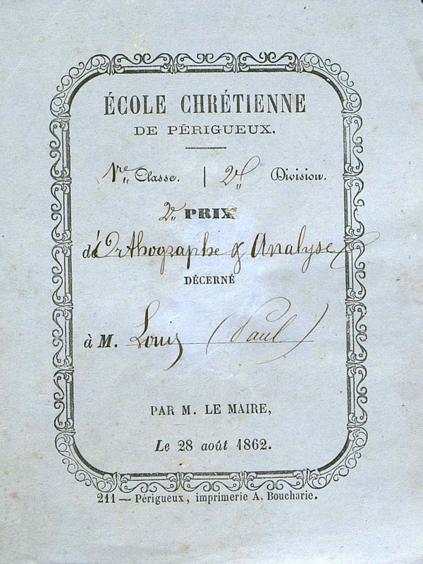 - Ecole chrétienne de Périgueux. 2ème prix d'orthographe et analyse