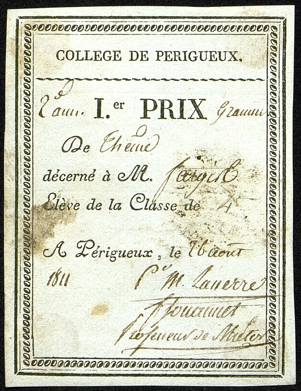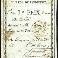 - Collège de Périgueux . Premier prix de grammaire. 1811
