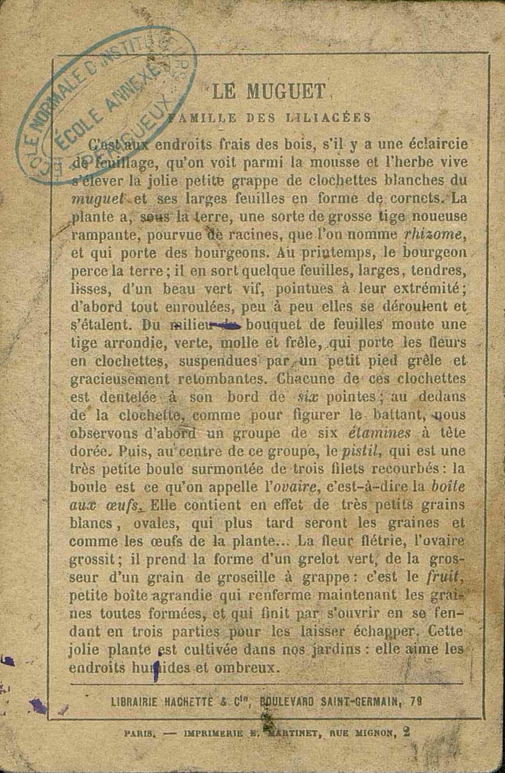 Bon point image recto et verso . Tampon de l'Ecole normale d'instituteurs de Périgueux. Ecole annexe