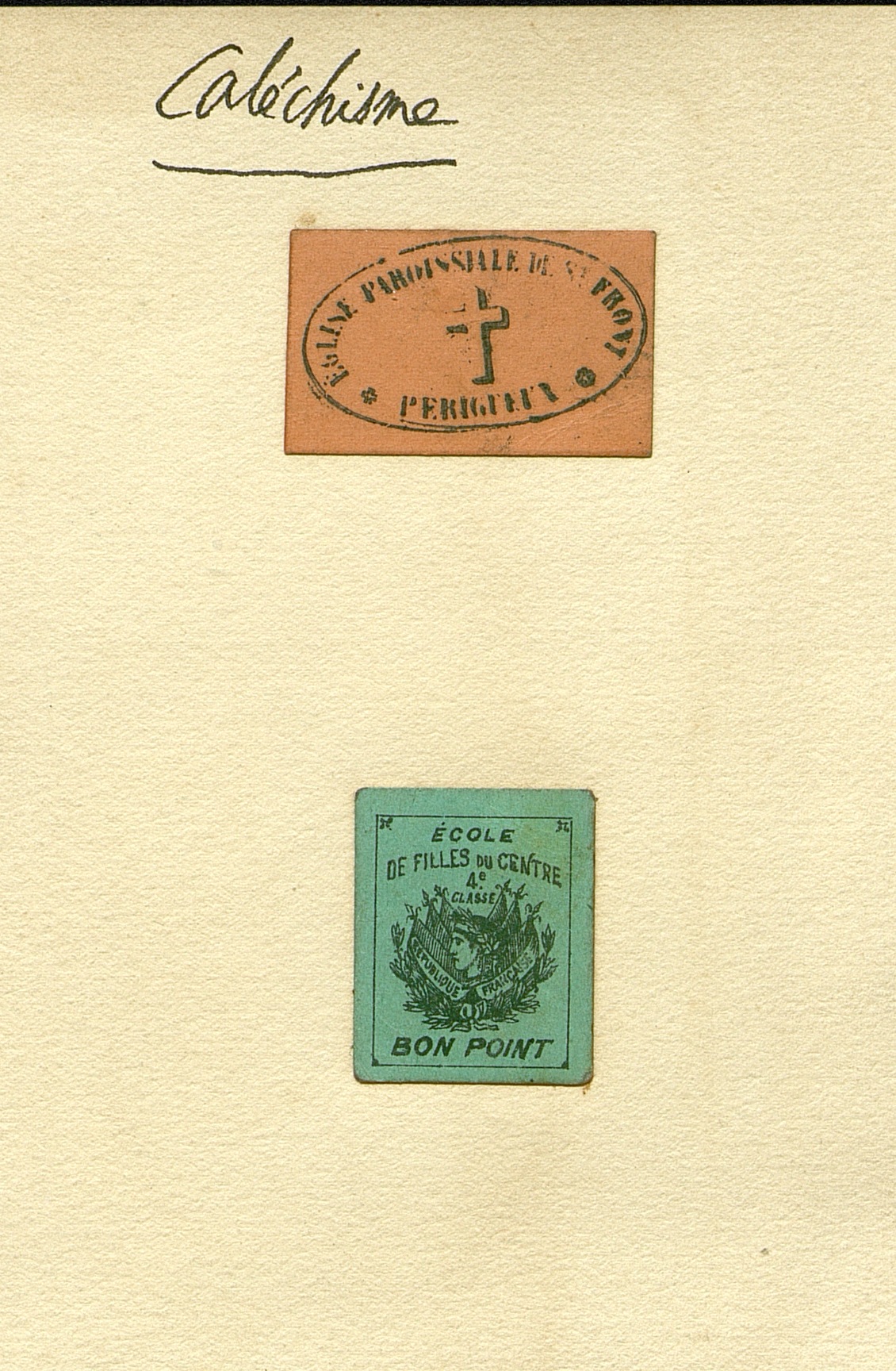 Bons points de L’École de filles du Centre 4e classe et de l’Église paroissiale de St-Front à Périgueux