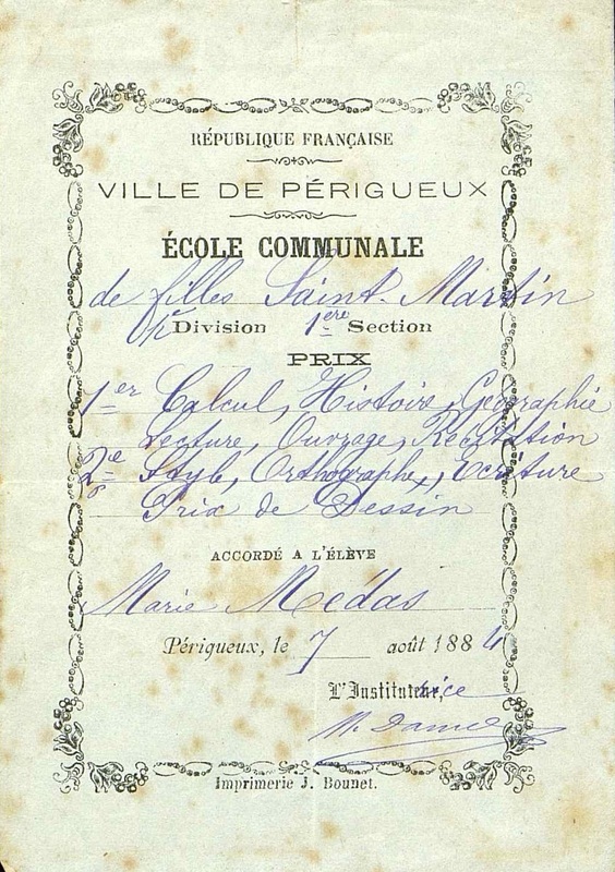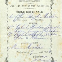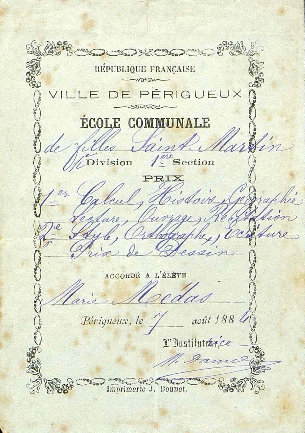 Prix de l' Ecole communale de fille de Saint-Martin . Prix de Calcul, Histoire, Géographie, Lecture, Ouvrage, Récitation Style, Orthographe, Ecriture, Dessin. Prix 1884