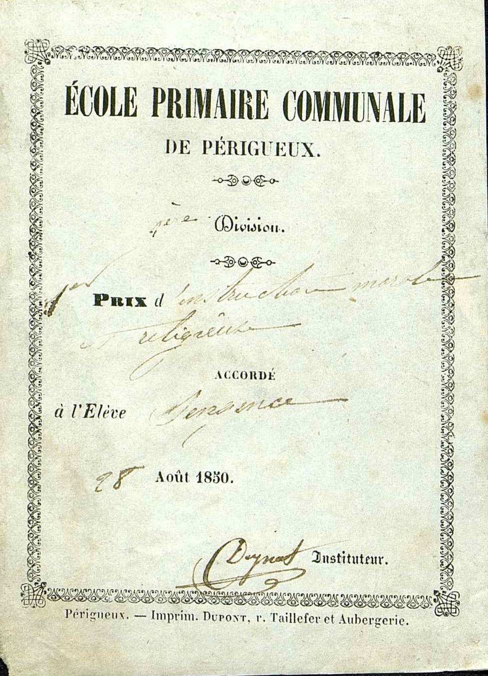 - Premier prix d'instruction morale et religieuse accordé à l'élève Sengence