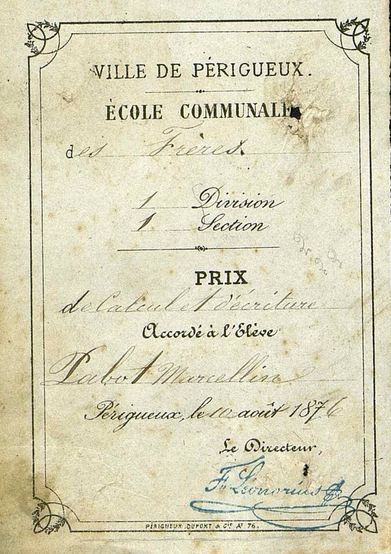 Prix de calcul et d'écriture accordé à l'élève Pabot Marcellin