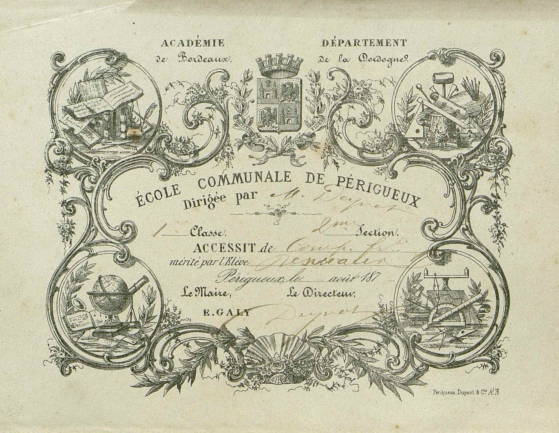 Ecole communale de Périgueux . Prix de composition française. 1re classe, 2me section