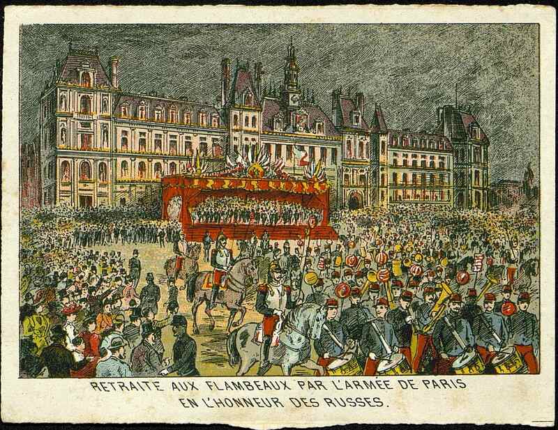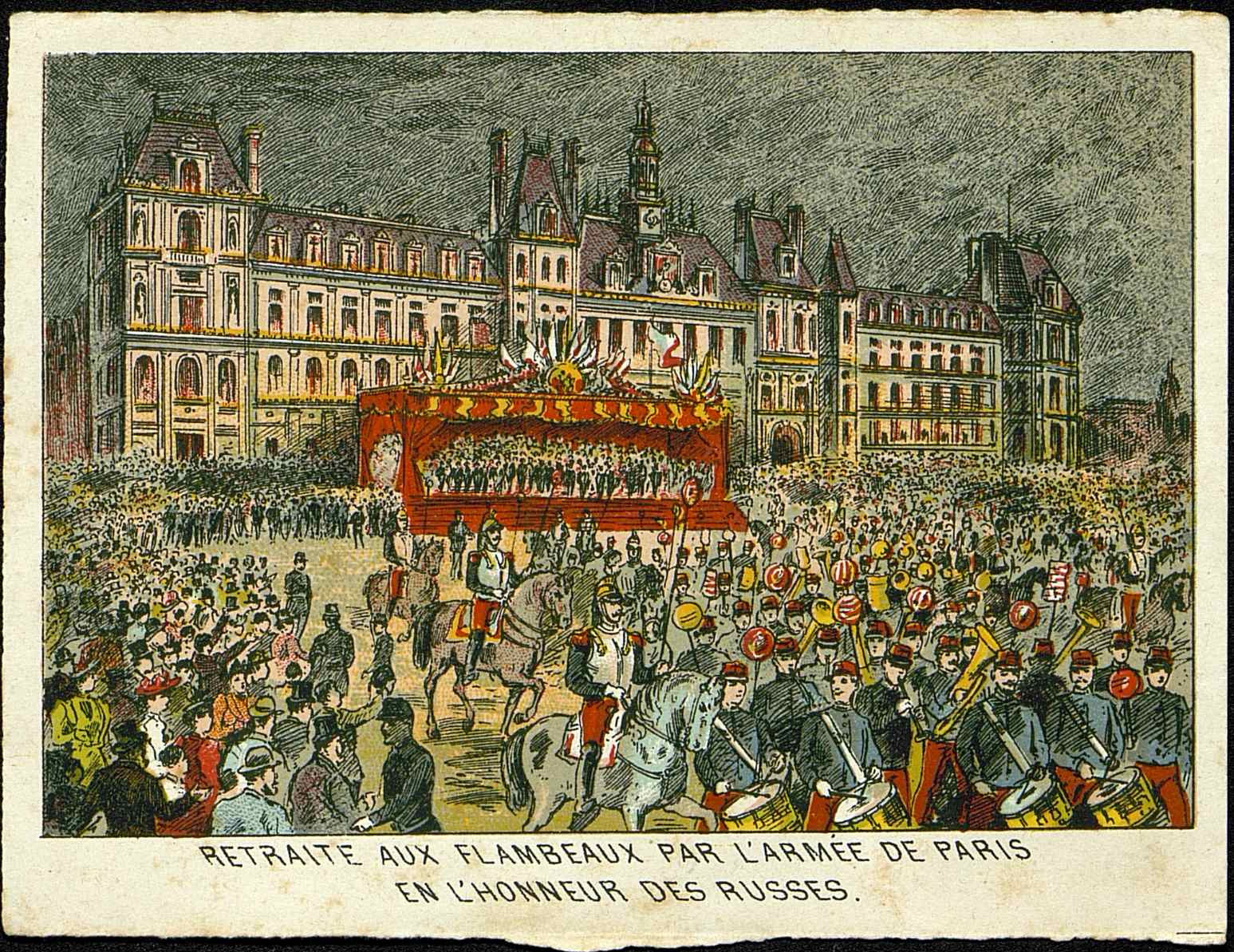 Retraite aux flambeaux par l'armée de Paris en l'honneur des russes