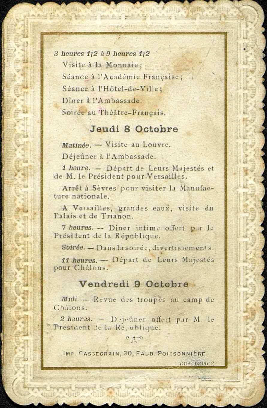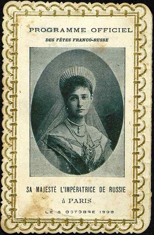 Programme officiel des fêtes franco-russes . Sa Majesté l'impératrice de Russie à Paris