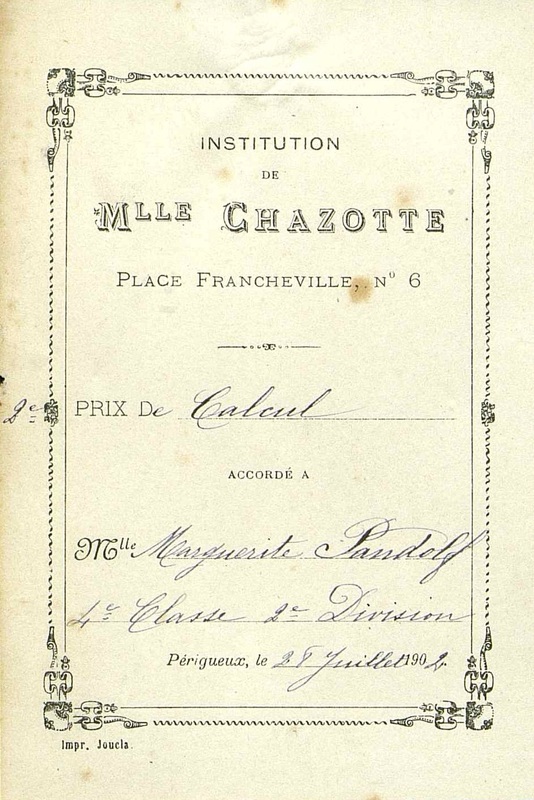 - accordé à Mlle Marguerite Pandolf. Quatrième classe deuxième division.