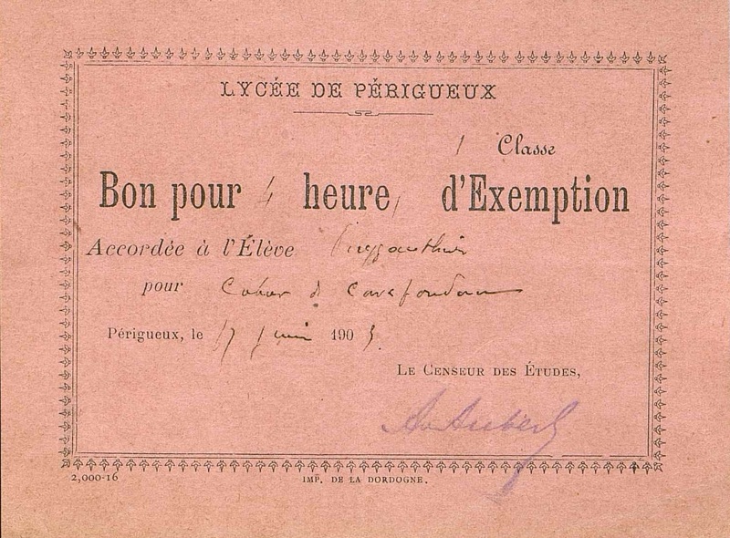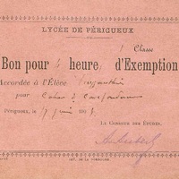 Lycée de Périgueux. Bon pour quatre heures d'exemption.