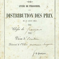 Université de France. Académie de Bordeaux. Lycée de Périgueux. Distribution des prix. 1853