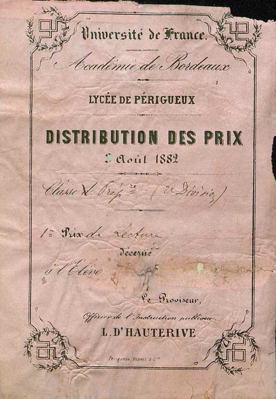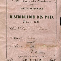Université de France. Académie de Bordeaux. Lycée de Périgueux. Distribution des prix. 1882