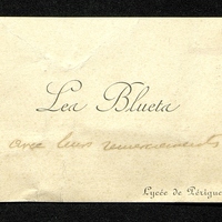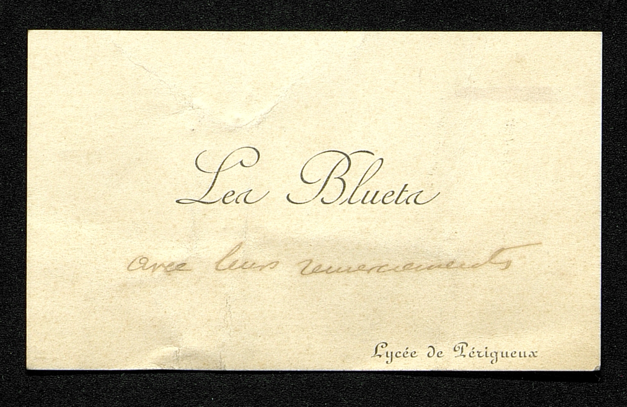 Carte de visite Les Bluets du Lycée de Périgueux. En manuscrit : avec les remerciements.