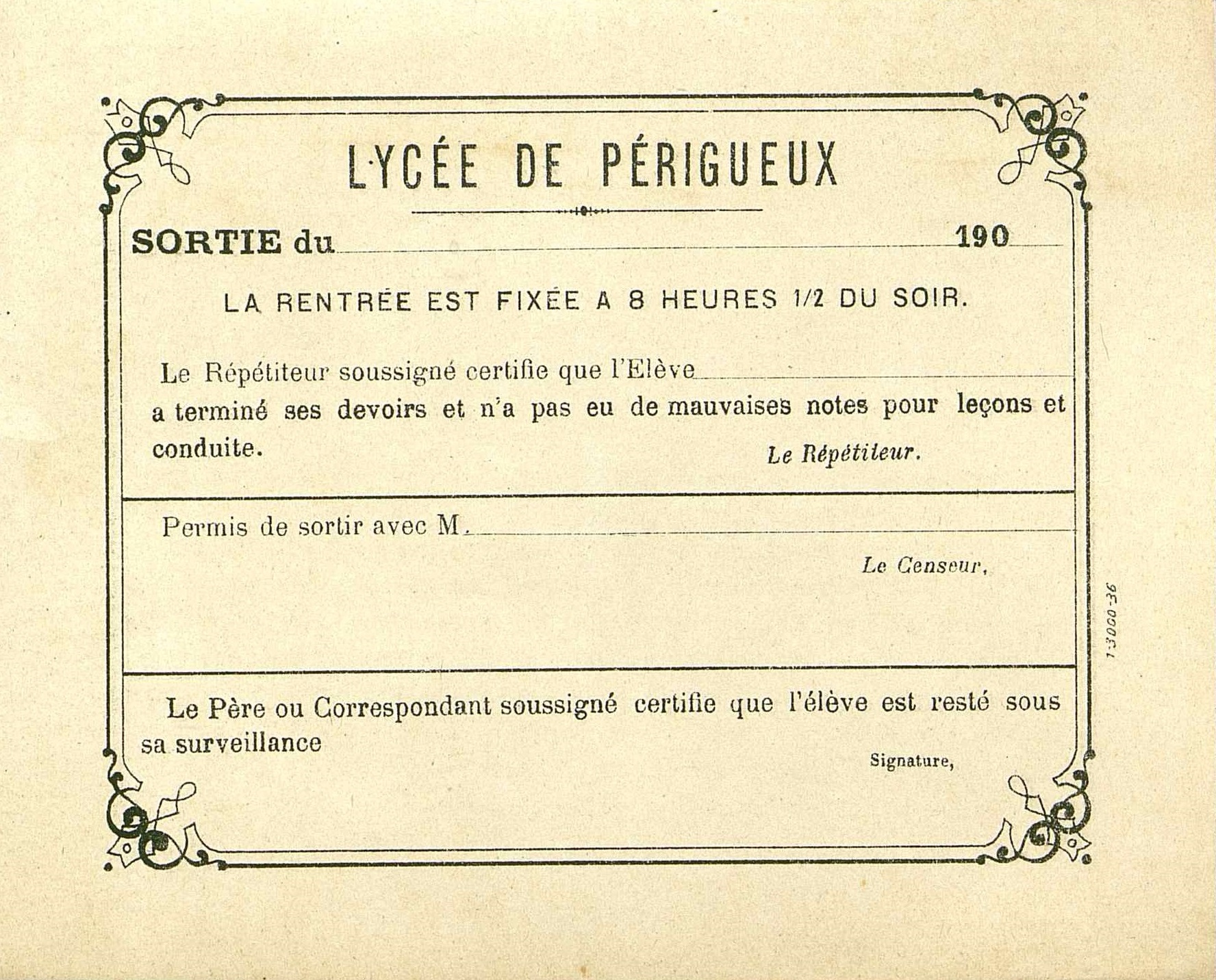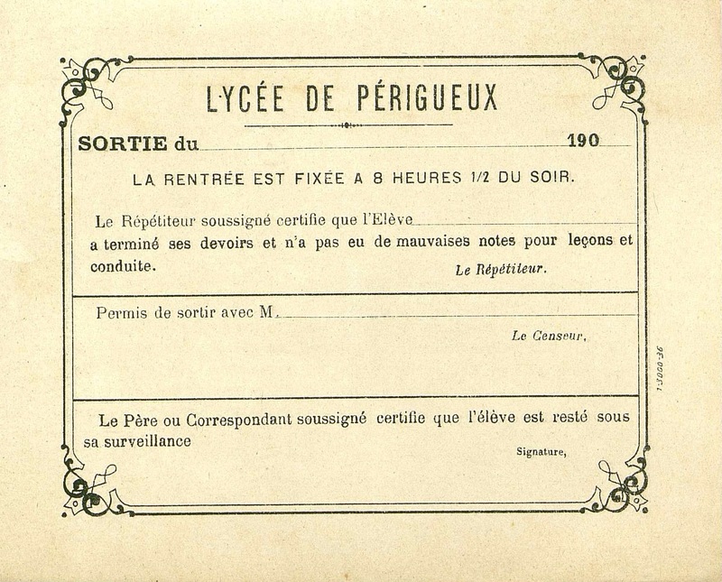 Autorisation de sortie du Lycée de Périgueux.