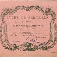 Lycée de Périgueux. Témoignage de satisfaction. 1905