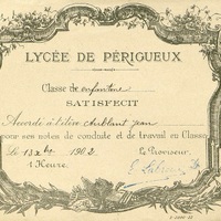 Satisfecit du Lycée de Périgueux accordé à l'élève Aublant Jean le 13 décembre 1902.